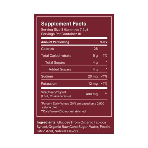 EASE SORENESS & SUPPORT MUSCLE RECOVERY: Formulated with VitaCherry Sport, a premium tart cherry extract made from whole, USA-grown Montmorency tart cherries, these gummies provide concentrated recovery support to combat tightness, fatigue, and post-exercise soreness. Packed with antioxidants, and phytonutrients, they help promote faster muscle repair—so you can bounce back stronger and return to your routine with ease.