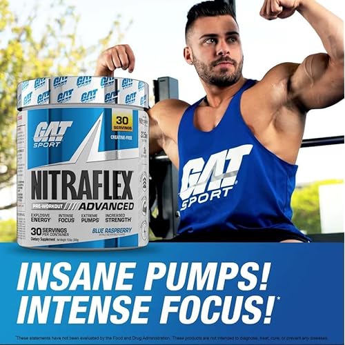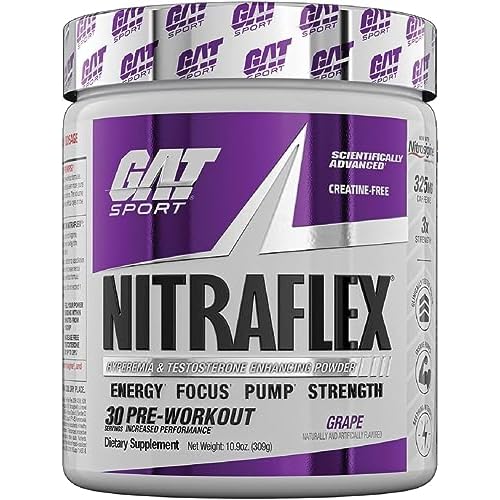 GAT SPORT, Nitraflex Advanced Pre-Workout Powder, Increases Blood Flow, Boosts Strength and Energy, Improves Exercise Performance (Grape, 30 Servings)