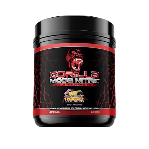 Gorilla Mode Nitric Upgraded Stimulant Free Pre-Workout – Best Tasting and Most Effective Stimulant Free Pre-Workout/Massive Pumps · Vasodilation · Power / 780 Grams (BlackBerry Lemonade)
