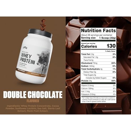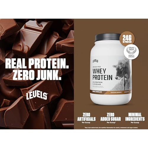 Levels Grass Fed Whey Protein Powder, No Artificials, 24G of Protein, Double Chocolate, 2LB