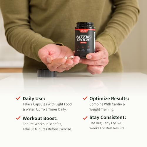 Snap Supplements Nitric Oxide Booster Supplement with L Arginine and L Citrulline Essential Amino Acids and Ginseng Root, Energy, Heart Health, Muscle Growth & Circulation Support, 60 Capsules