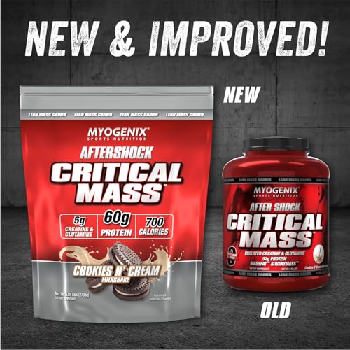 Myogenix Critical Mass – Cookies and Cream Flavored Muscle Mass Weight Gain Supplement, Zero Lactose Protein Powder, Anabolic Whey Protein (6.01 lbs)