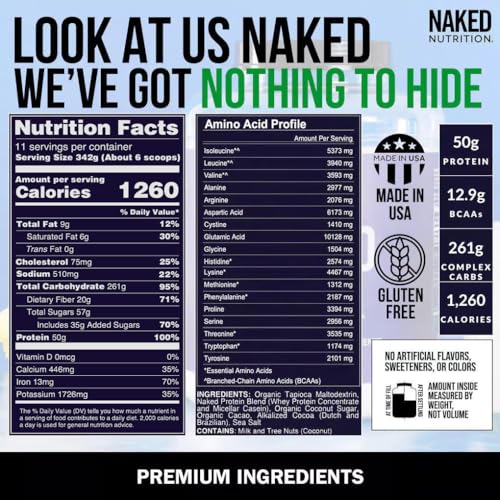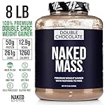 Naked Double Chocolate Mass – 1,260 Calories, 50G Protein, Nothing Artificial. All Natural Weight Gainer Protein Powder – 8Lb Bulk, GMO Free, Gluten Free & Soy Free