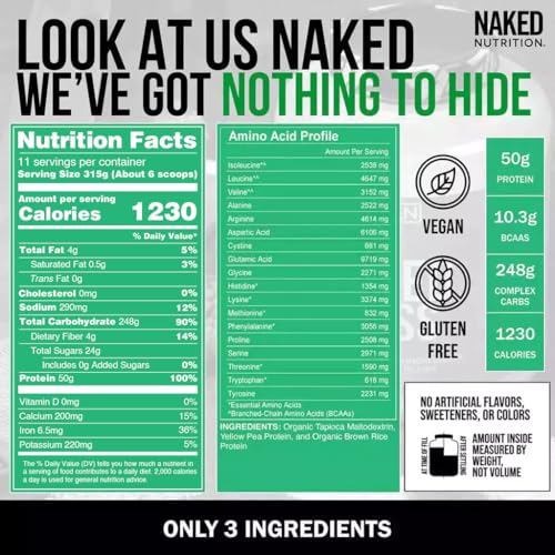 REAL CLEAN PROTEIN: Gain weight the right way with our lactose free weight gainer, which contains our premium Naked Pea and Naked Rice protein. Naked Vegan Mass provides your body with the amino acids it needs to maintain protein synthesis and help you gain muscle when used with a weightlifting fitness routine.