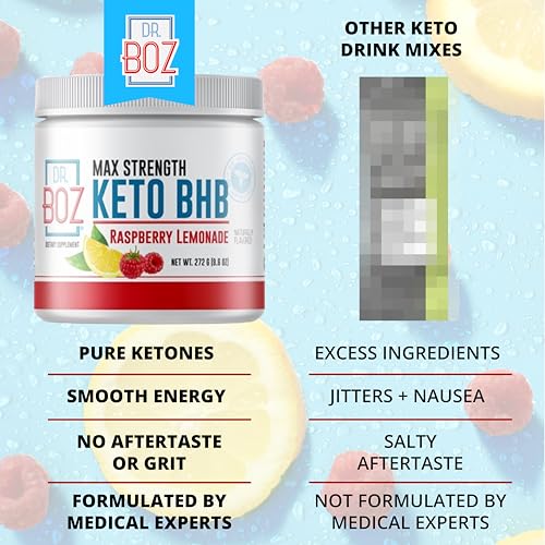 Dr. Boz – Keto BHB Powder – Raspberry Lemonade, 20 Servings – Ketones Drink – Increase Energy & Reduce Cravings – Max Strength Dietary Supplement – Quality Tested – Made in The USA – 9.6oz (272g)