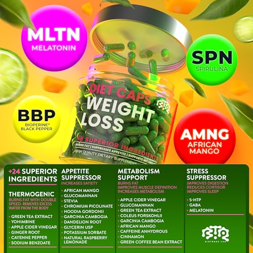 Bioteque Lab Weight Loss Diet Capsules, Natural Appetite Suppressant, Day & Night Fat Burner for Women & Men with Apple Cider, Green Coffee Bean Extract, Metabolism Booster Supplement – 60 Pills