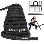 Yes4All Battle Rope with Protective Cover – Steel Anchor & Strap Included – Poly Dacron 1.5in – 30ft