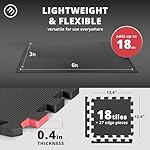 💪 𝗦𝗠𝗔𝗟𝗟𝗘𝗥 𝗠𝗔𝗧𝗦 𝗙𝗢𝗥 𝗠𝗢𝗥𝗘 𝗙𝗟𝗘𝗫𝗜𝗕𝗜𝗟𝗜𝗧𝗬 – 18 mats, with each one a size of 12.6” x 12.6” x 0.40” + edge pieces | 𝗖𝗼𝗺𝗽𝗹𝗲𝘁𝗲 𝘀𝘂𝗿𝗳𝗮𝗰𝗲 𝗮𝗿𝗲𝗮: 𝗮𝗽𝗽𝗿𝗼𝘅. 𝟲 𝗳𝘁 𝘅 𝟯 𝗳𝘁 = 𝟭𝟴 𝗳𝘁𝟮.