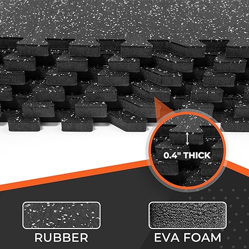 SUPERJARE 0.4” Thick 6 Pcs 24 Sq Ft Rubber Top Exercise Equipment Mats, High Density EVA Foam Mats with Rubber Top, Interlocking Gym Flooring for Home Gym, Protective Workout Mat, Black/Grey