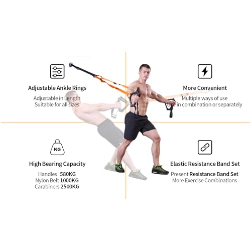 LIGHTWEIGHT, PORTABLE AND AFFORDABLE:All-in-one full body strength resistance training kit with door anchor and extension Strap. You can use the bodyweight resistance trainer kit with horizontal bars, wall, doors, sturdy beams, weight racks, heavy bag mounts, railings, trees, fences or any sturdy and safe object for exercise, as well as aerial yoga training.