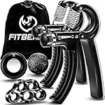 FitBeast Hand Grip Strengthener Workout Kit (5 Pack), 2 Forearm Grip Adjustable Resistance Hand Gripper, Finger Stretcher, Grip Ring & Stress Relief Grip Ball for Athletes