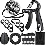 Hand Grip Strengthener Workout Kit (8 Pack) Forearm Grip Adjustable Resistance Hand Gripper, Finger Stretcher, Finger Exerciser, Grip Ring,Gyro Ball