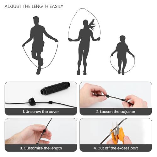 SMOOTH & EFFORTLESS SPINS. Our adjustable jump rope’s unique ball-bearing system makes each jump smoother. This skipping rope is easy to untangle and flatten out after every use, making this perfect for both beginners and professionals.