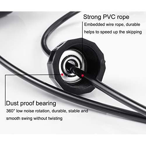 【Durable & Tangle-Free】 This jump rope is made of steel wires that are coated with strong PVC material, making it durable even after a long time exercising. Built-in with high-quality ball bearings. It avoids the twisting, winding or bending like other fitness ropes, it ensures a smooth and effortless spin making jump rope provides you with comfortable jump exercises。