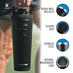 DURABLE CONSTRUCTION — Kitchen-grade metal shaker bottle resists odors and stains. The silicone base prevents sliding and reduces noise when set down. Our Gym shaker bottle fits standard cup holders for easy transport and Internal measurement lines help this workout bottle ensure precise mixing