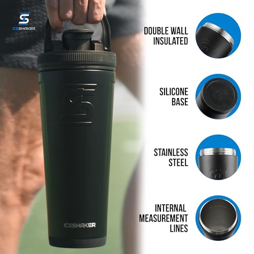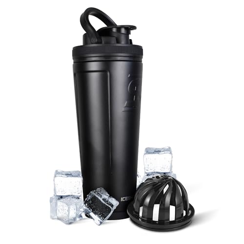 30+ HOURS ICE COLD — Double-wall vacuum insulation in this stainless steel protein shaker bottle keeps drinks chilled for over 30 hours, preventing condensation and maintaining temperature