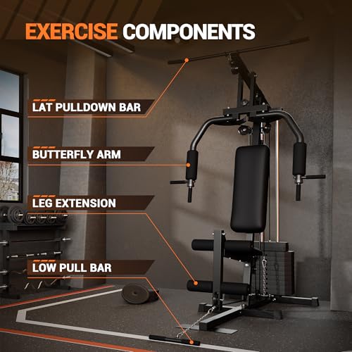 MULTIFUNCTIONALITY: The single station trainer offers a variety of workout options to support different muscle groups training such as chest, back, legs, shoulders and arms for a full body workout. Ideal for building muscle, sculpting and improving fitness, the Single Station Trainer with 100LBS Weight Stack saves space by integrating multiple functions, making it ideal for small home gyms or commercial gyms.