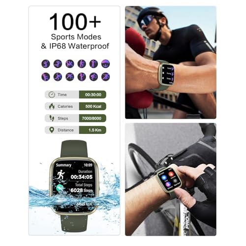 Smart Watches for Men/Women, 1.75″ Bluetooth Call, AI Voice Smartwatch, 24/7 Heart Rate Monitor, Blood Pressure/SpO2/Sleep Tracker, IP68 Waterproof, 100+ Sports Fitness Tracker for Android iOS Green