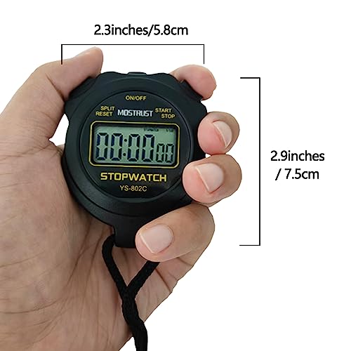 【Very Simple to Operate】: The mostrust digital basic stop watch is very simple to operate: Start/Stop, Reset and On/Off button.