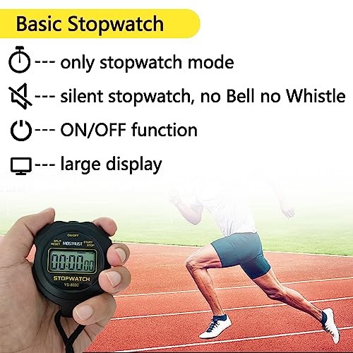 Digital Simple Stopwatch, 1/30 Lap Basic Stopwatch, No Bells, No Clock, No Alarm, Silent, Child Friendly, ON/Off for Swimming Coaches Kids