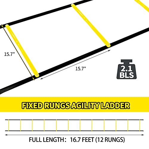【Professional Agility Ladder】Socpuro professional agility ladder with fixed rungs for effective sports footwork speed agility training and daily physical fitness or weight loss exercise.