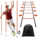 Agility Training Poles Equipment Soccer Training Equipment includes 4 Pcs 5ft Soccer Training Poles 13 ft Agility Ladder 10 Soccer Disc Cones with Black Bag for Speed Training