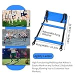 IMPROVE SPEED AND EXPLOSIVENESS: Jump rope can build your aerobic endurance, stamina, and speed, perfect for various sports exercises such as soccer, baseball, basketball, etc. 12 rungs adjustable Agility ladders, and 12 disc cones, you can design plenty of footwork exercises both indoors and outdoors. to increase acceleration, foot strength, speed, balance, and body control.