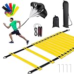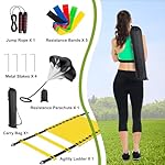 Soccer Training Equipment Set, 20 Feet 12 Rungs Pro Speed & Agility Ladder, Resistance Parachute, Jump Rope, 5 Resistance Bands with Carrying Bag