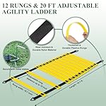 【Adjustable Agility Ladder】Our agility ladder is designed with 12 rungs, the spacing between the rungs can be adjusted to 15 inches using nylon straps, and the total length can reach 20 feet. Suitable for different levels, skill sets, and exercises. Perfect for training at home, in the gym, etc. It can also be secured to the lawn with the included steel spikes for safe exercise on the grass or in the park.