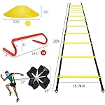 Speed & Agility Ladder Training Equipment Set, Includes 12 Rung 20ft Agility Ladder, 4 Agility Hurdles,12 Disc Cones, 1 Resistance Parachute for Training Football Soccer Basketball Athletes