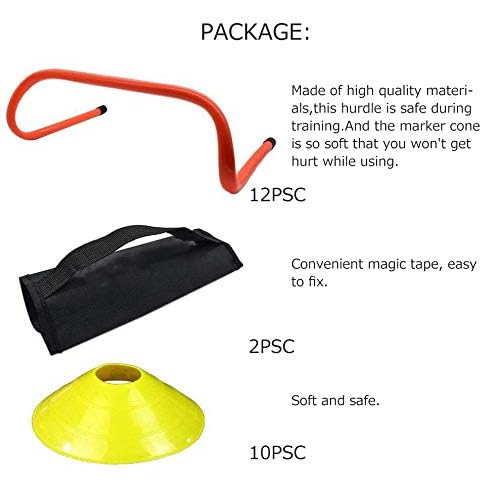 Set Contents: 12Ă—Hurdle(Height:5.9″),2Ă—Carry strap,10Ă—yellow marker.
