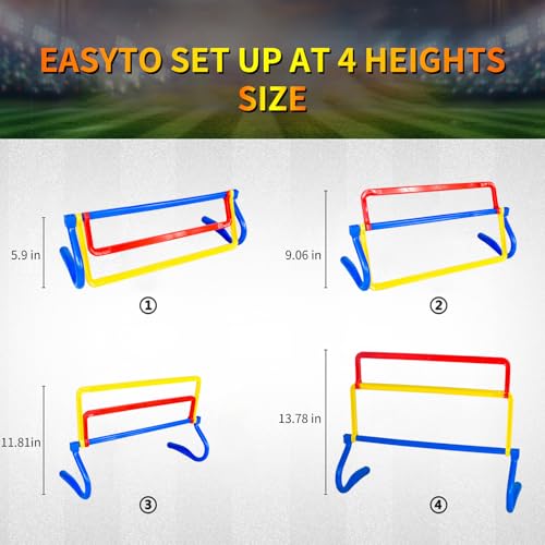 6 Pack Multicolor Agility Hurdles 4 Height Adjustable Speed Training Hurdles Fitness & Speed Training Equipment