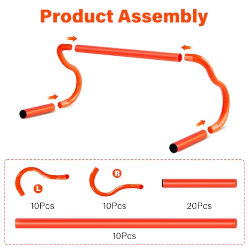 Agility Training Equipment Set: Package Contents: 10 Agility Hurdles, 10 Football Cones, 1 Carrying Bag. Made of lightweight, durable, weatherproof PP, shatterproof and sturdy. Bright colors ensure high visibility during indoor and outdoor training.