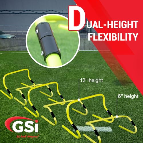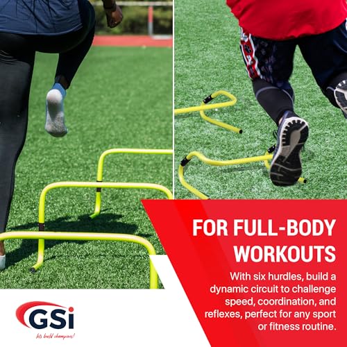 GSi Dual Height Agility Hurdle Pack of 6 – Adjustable 6″ & 12″ Training Hurdles for Sports, Fitness, and Agility Drills – Durable PVC Yellow Speed Hurdles for Soccer, Track, and Football Training