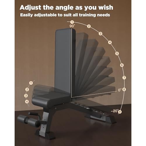 2025 NEW VERSION WEIGHT BENCH: Designed for a combination of versatility and comfort. The adjustable angle of this 1200lb weight bench expands up to 90 degrees, accommodating a plethora of workouts.