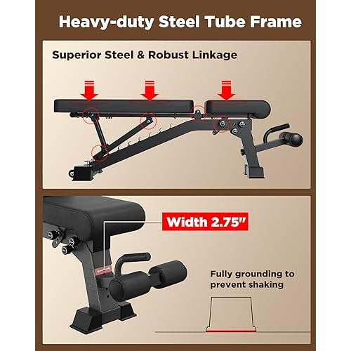 1200 LB MAX WEIGHT CAPACITY: Constructed with superior heavy-duty commercial-grade steel from our 2025 upgrade,and featuring a unique triangular support structure with a widened base, this bench ensures the utmost safety of users.One-piece construction almost replaces the folding function for greater load capacity(1200LB) and stability.