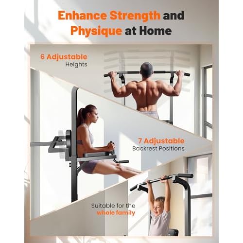 【Designed for Comfort】The 10 degree reclined position, padded armrests and backrest add an extra level of comfort during exercises like dips, making the workout experience more enjoyable and less strenuous on your joints. The 6 adjustable height and 7 adjustable wide-fitted backrest meet the whole family workout needs.
