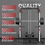 【Robust Stability and Safety for Intense Workout】Engineered for maximum stability, our home power rack with lat pulldown offers 2″x2″ commercial heavy-duty chrome-coated & powder-coated uprights designed to handle the most intense weight lifting. The maximum weight capacity of this squat rack for home gym is up to 2000 lbs. With 12 adjustable heights , this power cage adapts effortlessly to your evolving weight lifting goals