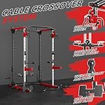Power Cage with Cable Crossover System, Power Rack with LAT PullDown Cable Pulley System, Squat Rack for Home Gym with Full Body Strength Training Attachments