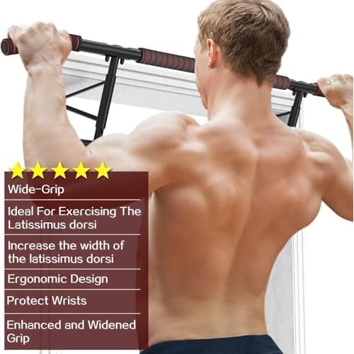 Pull Up Bar Doorway with Ergonomic Grip – Fitness Chin-Up Frame for Home Gym Exercise – Multi-Angle Grip – 2024 Upgrade Smart Hook (Fits Almost All Doors)