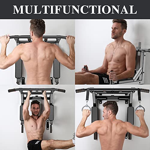 STARBRILLIANT Pull Up Bar Wall Mounted Chin Up Bar Wall Mount Multifunctional Dip Station for Indoor Home Gym Workout,Power Tower Set Training Equipment Fitness Dip Stand Supports to 440 Lbs