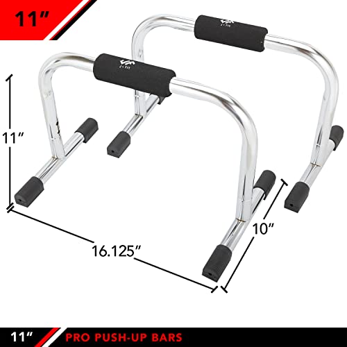 ELEVATED PUSH-UP BAR: Made in Taiwan, these 9″ high premium push up bars are made from durable chrome-plated metal, making them able to withstand all of your heavy-duty training routines and push-up challenges for years to come
