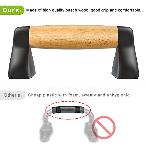 【Comfortable Wooden Pushup Handles】The thick wood handles are 1.7 inches, fit most men & women hand grip, ergonomic handle help alleviate the strain on your wrist and protect your wrists