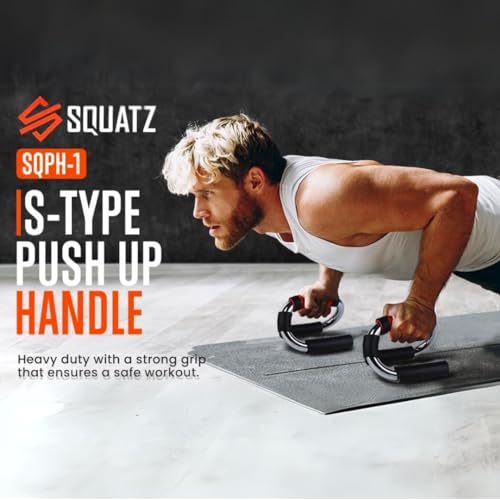 SQUATZ S-Shaped Push Up Bars – Pushup Handles for Men and Women – Steel and Foam, Nonslip Grip Strength Training (Set of 2)
