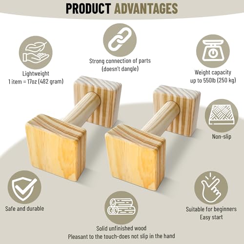 Wooden construction: Made with high-quality wood for durability and stability during push up exercises