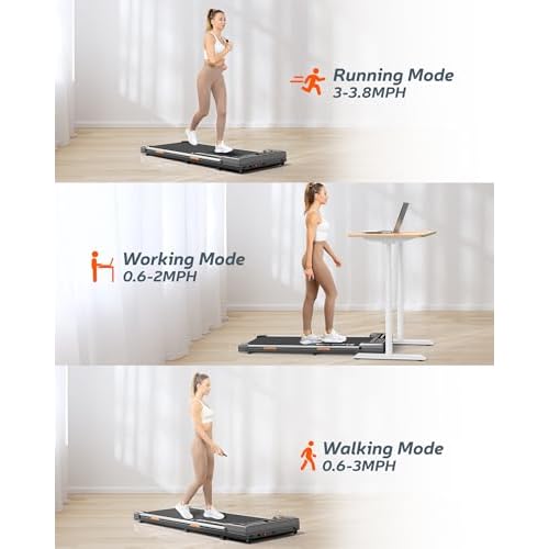 2 in 1 Walking Pad: Stay active throughout the day with our 2-in-1 portable treadmill. The speed of walking pad is 0.6MPH-3.8MPH. Greatl for working while walking or jogging, this under desk walking pad lets you maintain your fitness routine