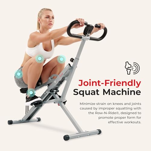 Sunny Health & Fitness Row-N-Ride Squat Assist Trainer, Foldable & Easy Setup Exercise Equipment w/Adjustable Resistance, Home Gym Training Machine for Arm, Glute & Leg Workout, Optional in Colors