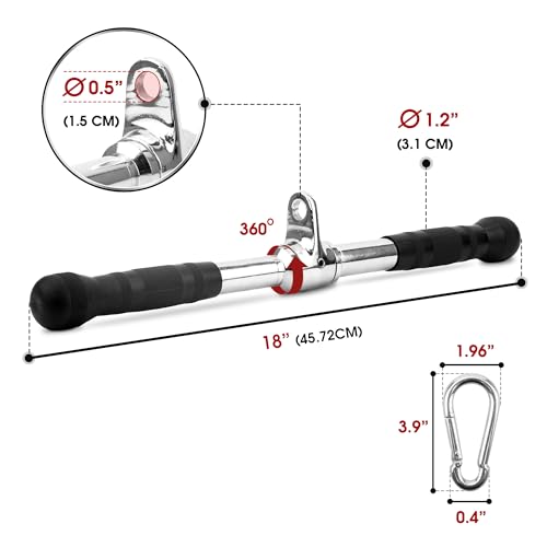 OUTSTANDING CAPACITY: The LAT pull down attachments are suitable for intense strength training, supporting up to 980 lbs; Designed to be sturdy with a 1 inch diameter, cable machine attachment is suitable for most hand grips; Included one carabiner