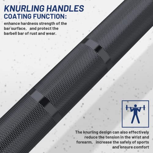 [Medium Barbell Knurling] The 28mm grip shaft with a 1.2MM medium-level knurling, and have a moderate whip, increases friction and improves the grip experience. The knurling design can also effectively reduce the tension in the wrist and forearm, increase the safety of sports and ensure comfort