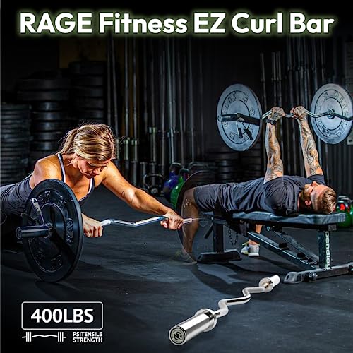 [ VERSATILE EXERCISES ] : The Rage Fitness ez barbell curl bar is perfect for a wide range of upper body movements like curls, rows, presses, and raises. Plus, it’s great for lower body exercises too – Experience a complete workout with one easy curl bar.